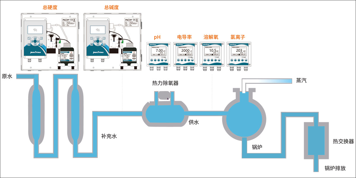 在蒸汽鍋爐的任何設(shè)施中,水質(zhì)硬度監(jiān)測(cè)是降低能源成本的一個(gè)重要步驟。調(diào)查顯示,在能源和故障上改進(jìn)控制參數(shù)(如水質(zhì)硬度),每年可以節(jié)省不少費(fèi)用,而且還可以顯著增加熱水設(shè)備或蒸汽鍋爐的使用壽命。JENSPRIMA公司可提供全套鍋爐水質(zhì)在線監(jiān)測(cè)系統(tǒng)(總硬度總堿度pH、電導(dǎo)率、溶解氧、氯離子、總鐵等)及集成服務(wù)。